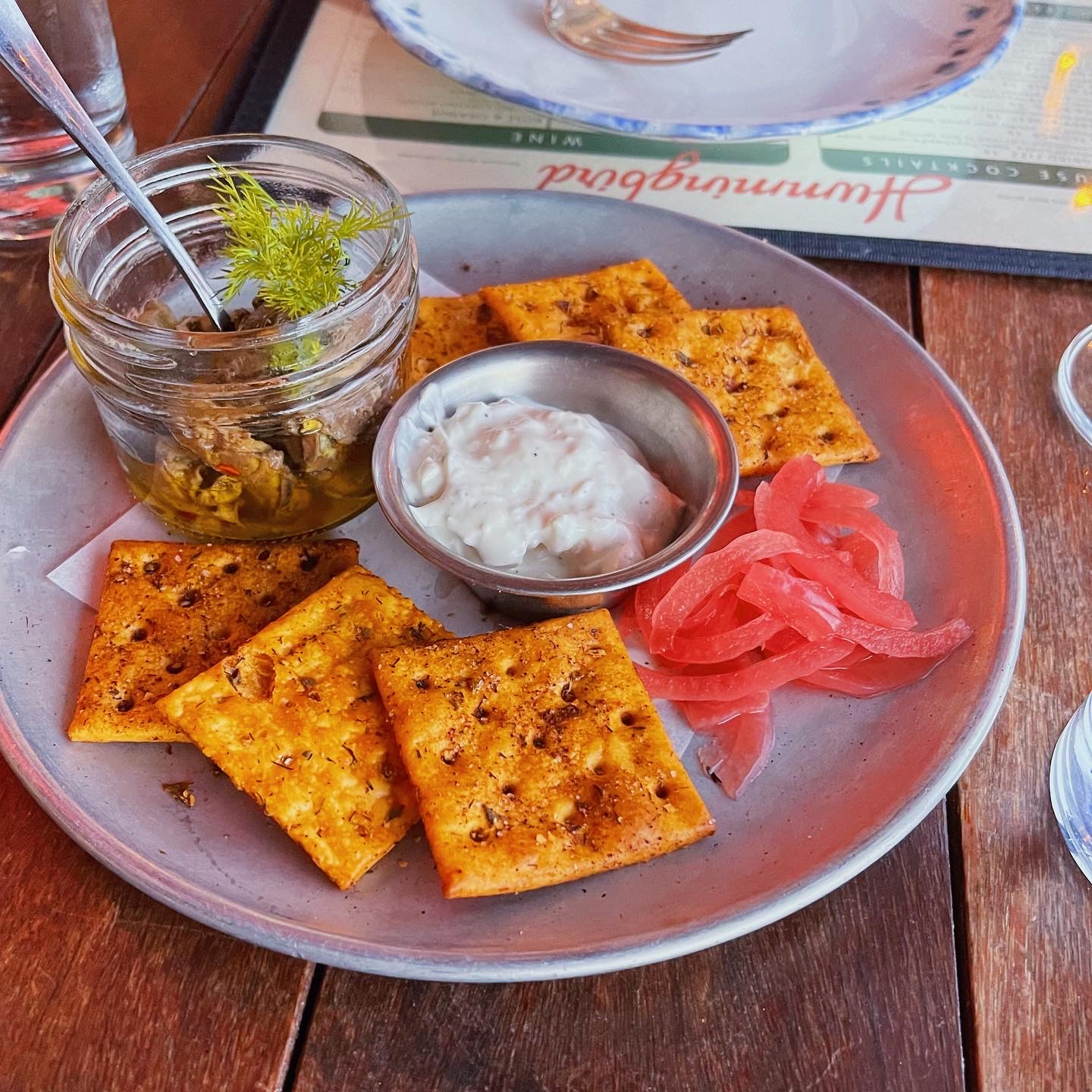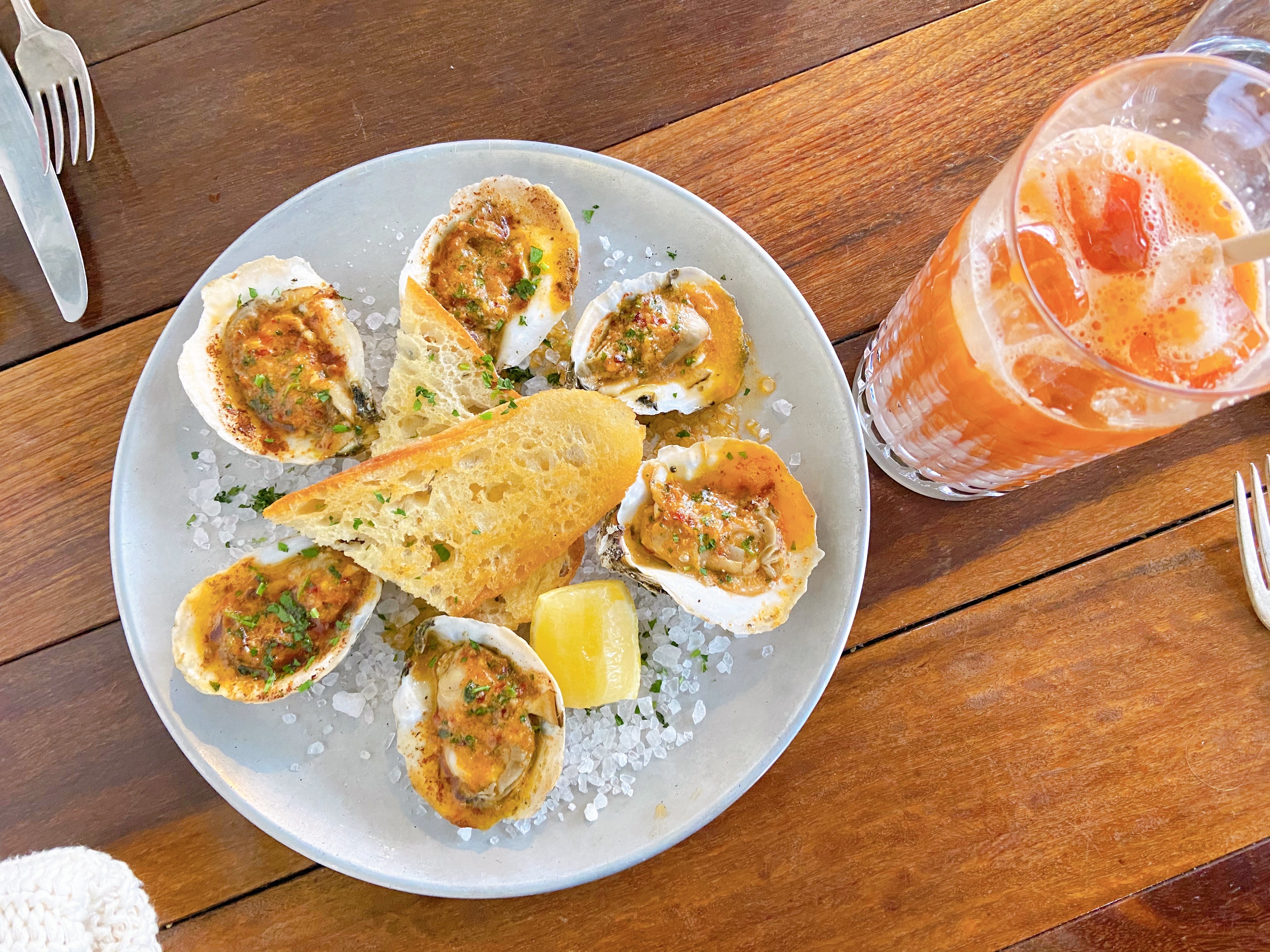 Now, enough exposition, let’s discuss the restaurant itself. With a warm and inviting patio, and a stunning bar that resides inside- the ambience is incredible. The string lights along the outside beckon you to come sit down and enjoy the food. Speaking of which, the food provides you with comfort all the while providing exciting flavors you likely won’t find in your home kitchen (and if you do, I am very jealous.) The menu is seasonal and so there aren’t many constants, but what does stick around does so for good reason. The spiced chicken wings, charbroiled oysters, smoked oysters, avocado toast, smoked deviled eggs, and brunch burger are all mainstays and must-sees. Oh, and if you have even the slightest bit of room for dessert, try the sticky bun or their ricotta fritters; donut-like balls served on mascarpone and seasonal jam. Heavenly.