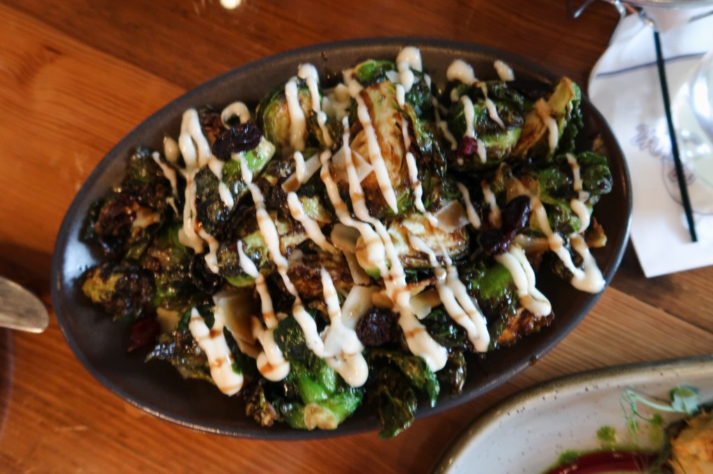 After ordering drinks we placed an order for two appetizers; crab cakes and balsamic glazed brussel sprouts. In my eyes, these were both real stars. The crab cake was majority crab, which frankly can be difficult to find as some recipes will fill the cake with veggies and breadcrumbs instead of the real gem itself- the fresh caught crab. The brussels were never going to be bad- I mean seriously you can’t mess up balsamic brussel sprouts- but the addition of a garlic aioli and some roasted bits of bacon really stepped up their sprout game. Our table found itself fighting over which one would get that final scoop of deliciousness.
